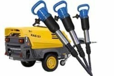 Молотки отбойные до четырех штук, бетоноломы, пескоструйная установка, опрессовка, шланги 50-100 метров бетоноломы.