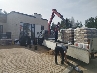 Доставка, стройматериала, оборудование и т. д. Есть монтажная люлька. Оплата нал. без/нал.