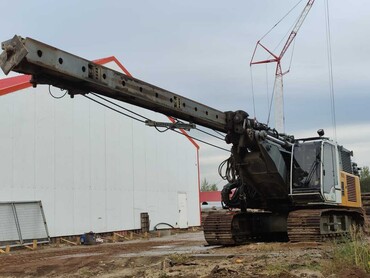 Сваебойная установка Liebherr LRB 155 массой 68,1т в отличном состоянии. В комплекте гидромолот Н85 массой 5т с возможностью регулировки частоты ударов в диапазоне от 50 до 100 ударов/мин и энергией удара от 8 (8000 Джоулей) до 60 (60 000 Джоулей) кНм. Так же в комплекте удлинитель мачты 3м, каретка для шпунтового оборудования.