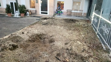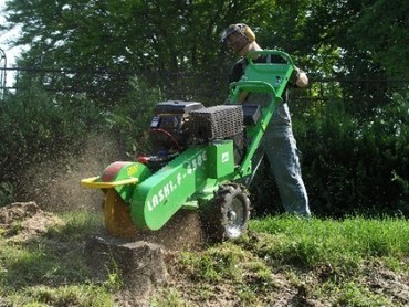 Удаляем пни методом дробления. Пень дробиться фрезой на глубину до 20см ниже уровня земли. После дробления остаются опилки перемешенные с землёй, которые можно разровнять или убрать. Преимущества метода: не надо грузить и вывозить пни, возможность работать в стесненных условиях не повреждая ландшафт.